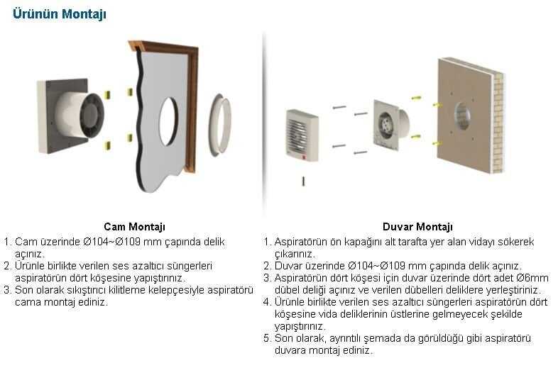 - Banyo, tuvalet, mutfak, kiler, çamaşır odası, garaj, işyeri vb. yerlerin havalandırılması için uygundur.