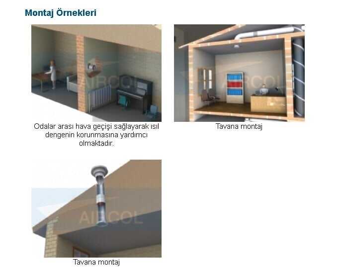 - Özellikle boru içi havalandırma uygulamalarında ve odalar arası hava geçişlerinin sağlanmasında kullanılmak üzere üretilmiştir.