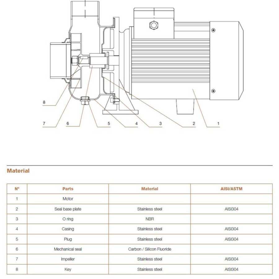 - Çark: Paslanmaz çelik (AISI 304)