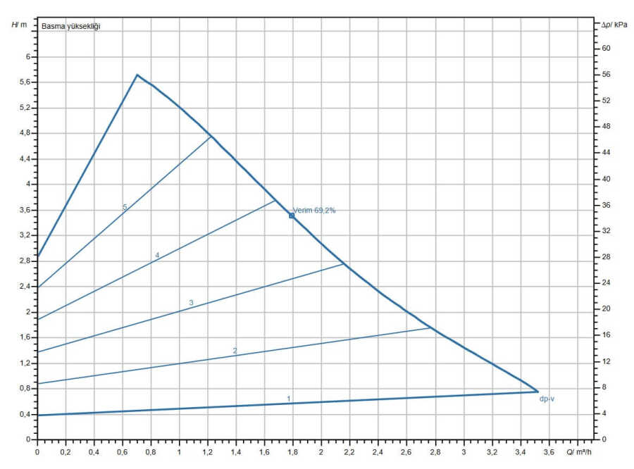 - Optimal randıman adaptasyonu için önceden seçilebilen regülasyon şekilleri: Sabit fark basıncı (Δp-c), değişken fark basıncı (Δp-v), sabit devir hızı (3 kontrol eğrisi)